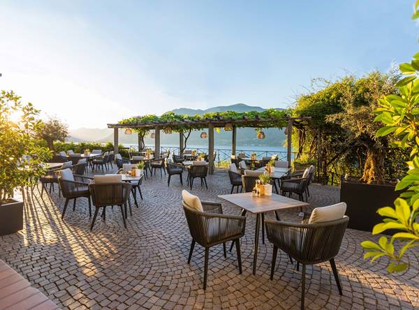 Starten Sie den Tag mit unserem reichhaltigen Frühstücksbuffet mit Panoramablick auf den Lago Maggiore und die atemberaubende Bergwelt im Ristorante Al Fresco oder auf der Terrasse.
