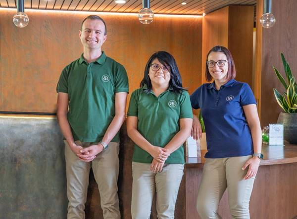 The hotel has a total of 45 employees. Each department (reception, housekeeping, kitchen, service, garden, maintenance, revenue/marketing) has a department head and a deputy department head. Each department has between 3 and 12 employees. The administration is centralised at the Reka headquarter in Bern.