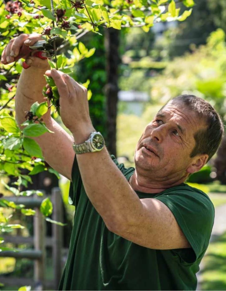 Some call Martin Russenberger the "Indiana Jones of gardeners", probably because he spares neither effort nor wilderness to marvel at rare plants in their natural environment. One thing is certain: in almost 40 years, our "veteran" has created a fantastically rich oasis. Of course, he has a "green thumb". But this task requires more: a vision and a concept for the whole park. Martin knows the microclimate of every corner and has a feeling for where which species feels at home. He is connected with his plants every day, there is hardly any time for holidays. The garden is his life, this is his world, this is where he cares for his green kingdom with heart and devotion. And he lets it grow, blossom and flourish so that you, as a guest, are enchanted by colours and caressed by fragrances in every season. Martin's signature also characterises the rest of the hotel's surroundings, all the way up to the panorama pool. You will discover his treasures everywhere.